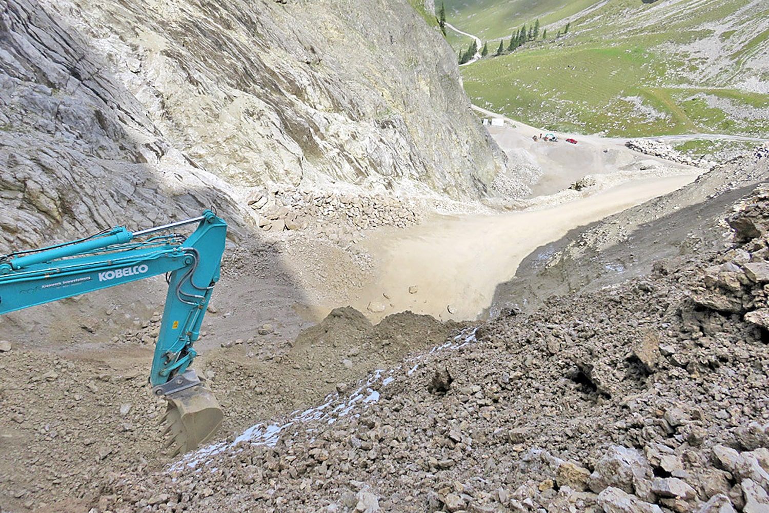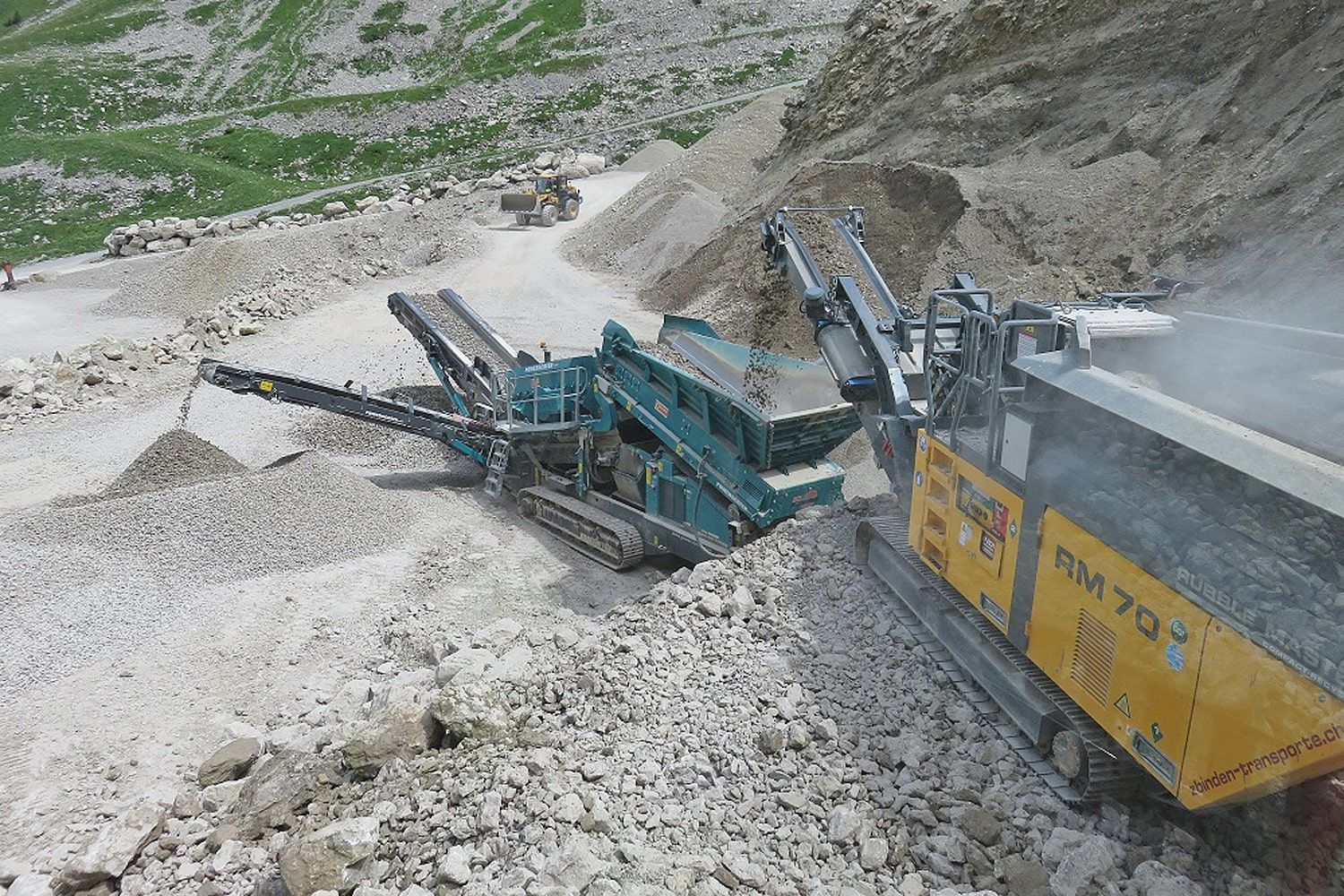 In den 60er Jahren wurde die Abbaustelle Pochten erschlossen. Diese eignete sich besonders gut da weder Land noch Wald beeinträchtigt wird und die Geröllhalde immer wieder Material nachschiebt. Zudem kann dank der Hanglage das Material stets emissionsarm talwärts transportiert werden.